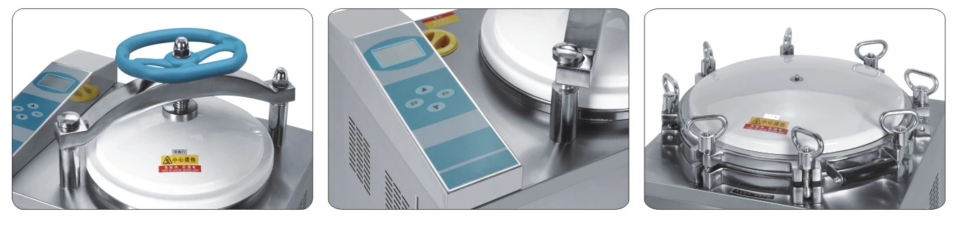 Pionowe sterylizatory parowe ciśnieniowe są wyposażone w system grzewczy, system sterowany mikrokomputerem, system ochrony przed przegrzaniem i nadciśnieniem, które zapewniają niezawodne działanie sterylizujące, wygodną obsługę i oszczędność energii. Nadają się do sterylizacji sprzętu, opatrunków, pojemników, płynów, pożywek hodowlanych, odpadów itp. w szpitalach, centrach kontroli chorób, laboratoriach biologicznych P2 i stacjach krwi itp. w instytutach naukowo-badawczych.